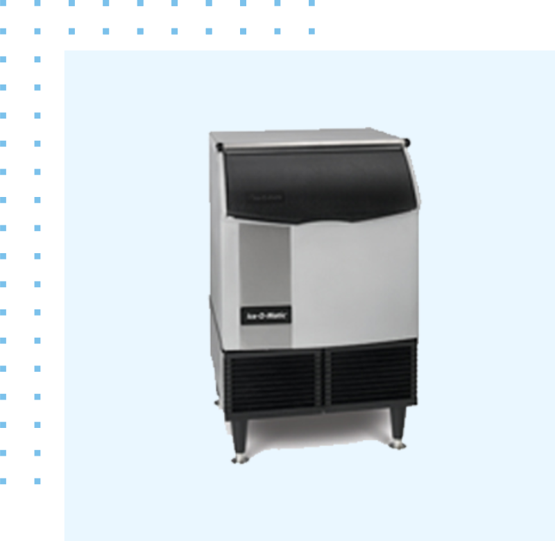 Ice maker and storage in one small machine. Stainless steel construction for durability. Water system components built with Agion to promote sanitation. Harvest assist component to ensure consistent ice production.